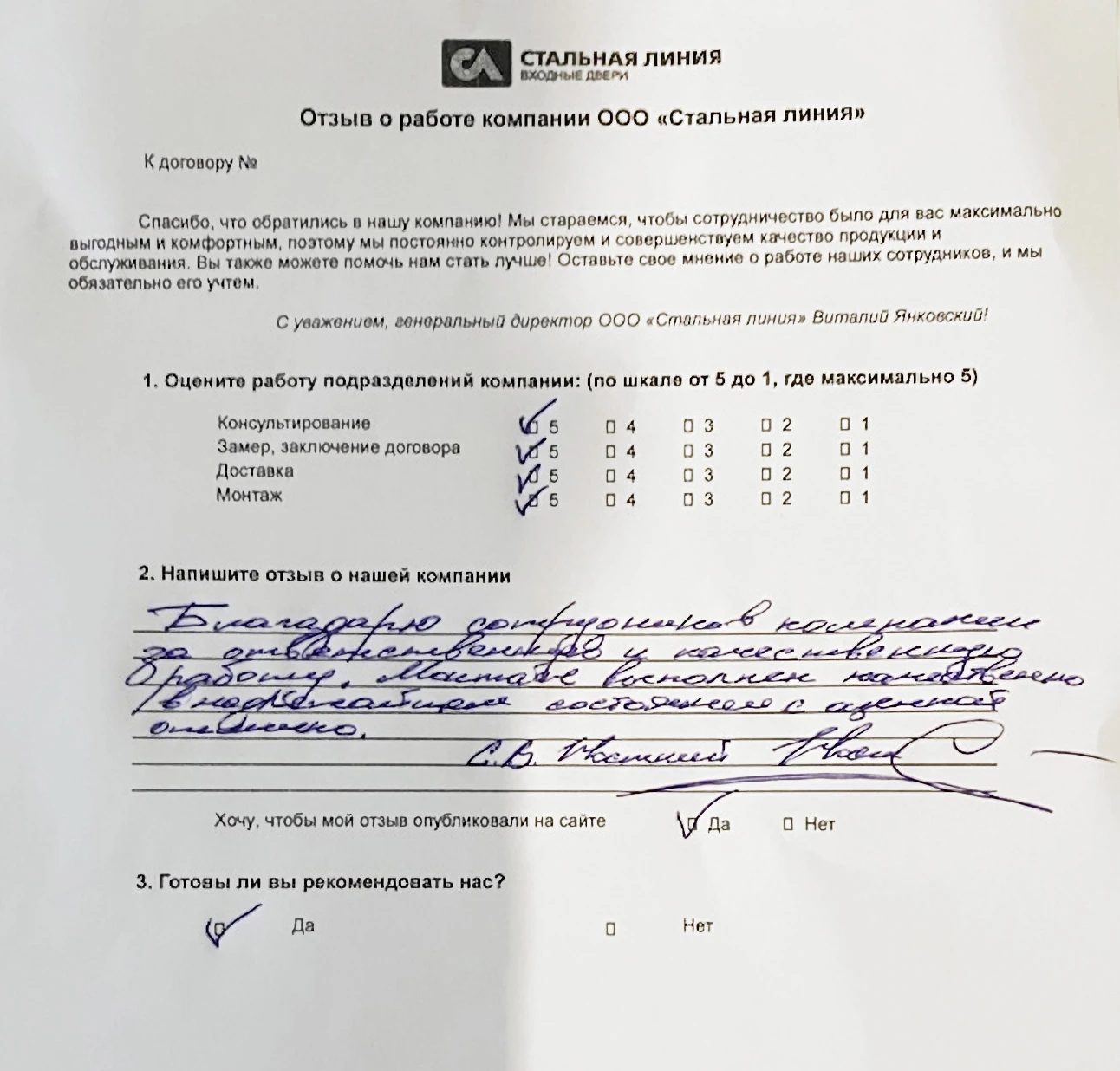 Благодарю сотрудников компании за ответственную и качественную работу. Монтаж выполнен качественно в надлежащем состоянии с оценкой отлично.
