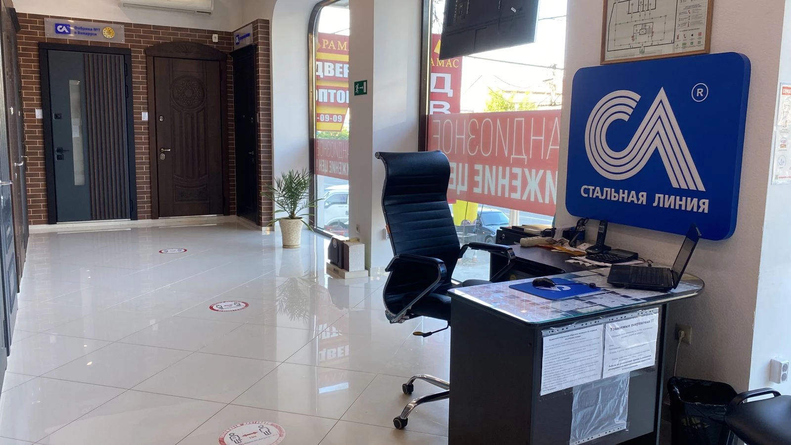 Бренд-секция дверей «Стальная линия» в салоне «РАМАС»,